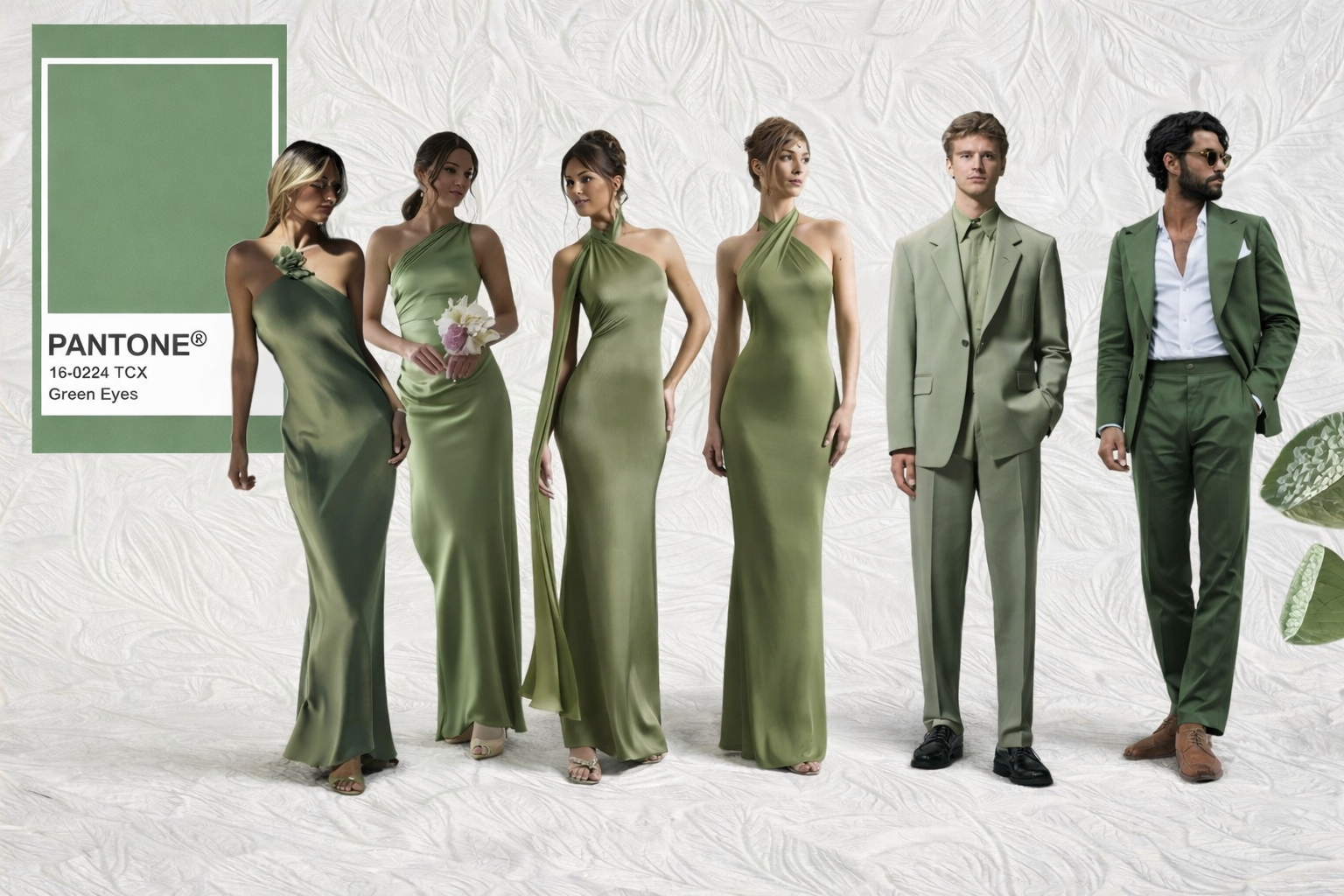 Cocktail dresses and suits. Outfits in green, burgundy, chocolate, and beige tones are welcome.
